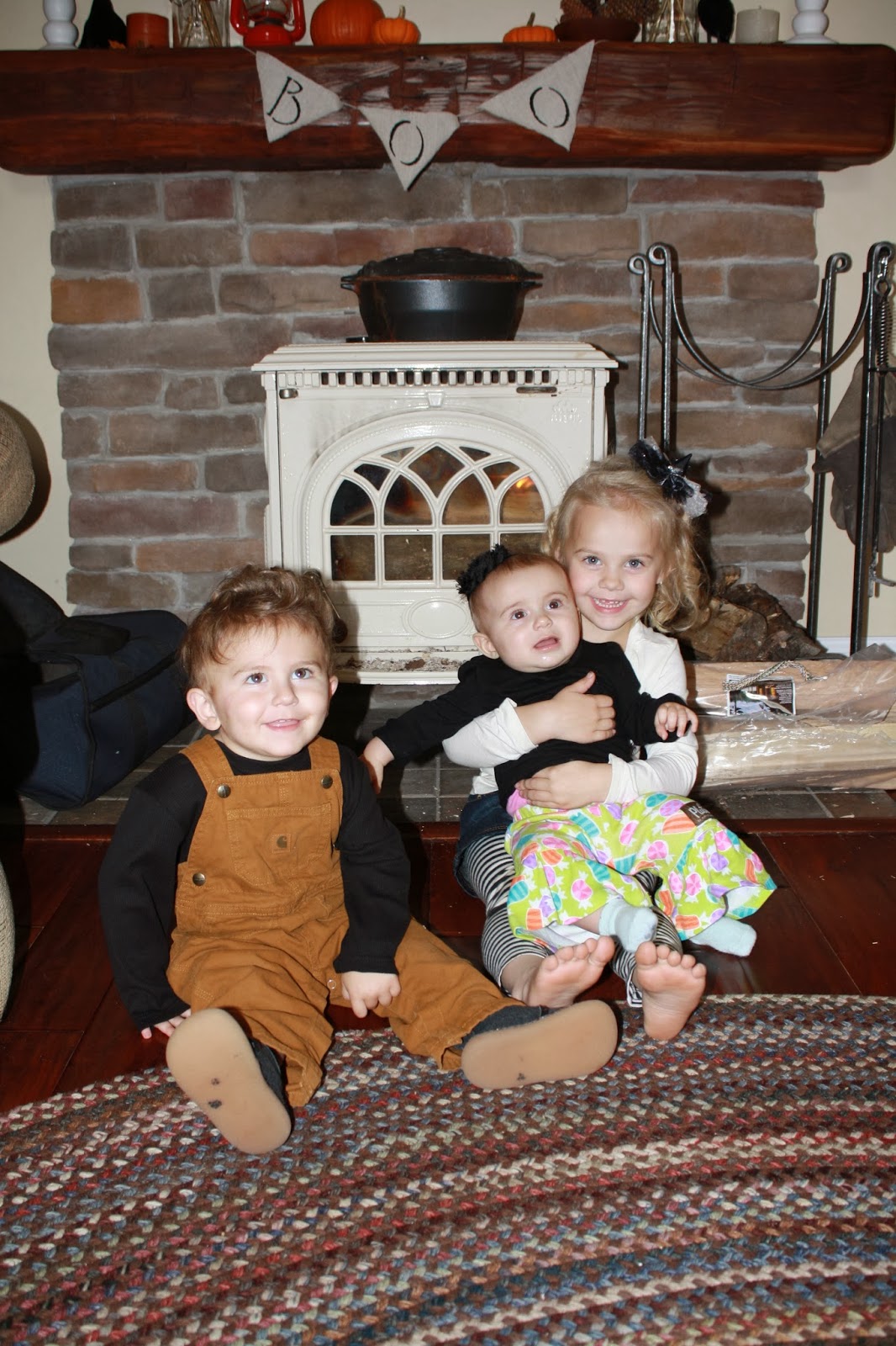 This was the first year B really " got it" and said trick or treat etc. We did 3 houses with everyone then brought the babies home and B and Daddy went back out for a few more houses. She was very good and had a blast. She was super excited we dressed up too. She did try to convince us to paint Gage for the Tin Man. Nope, not happening. :)